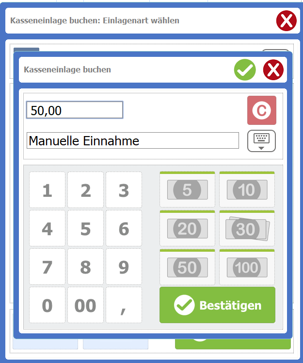 Kasse 4.1 Bereich Einlage / Entnahme