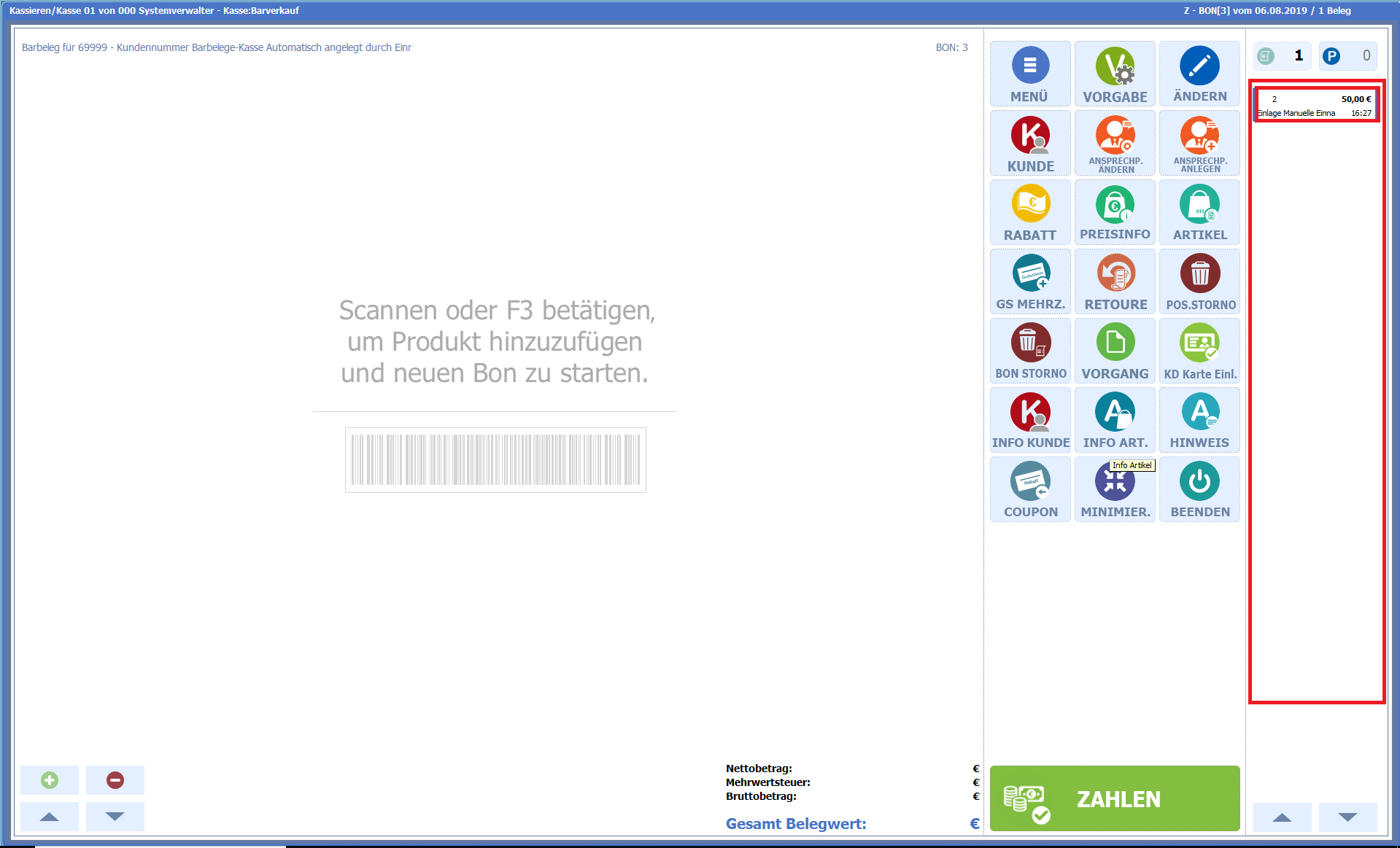 Kasse 4.1 Bereich Kassendesktop / Beleginfo