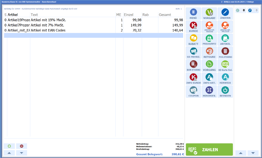 Mit dieser Programmerweiterung erscheint eine Meldung auf dem Bildschirm, dass bereits eine Barzahlung erfasst wurde, wenn eine weitere Barzahlung für einen Beleg vorgenommen wird.