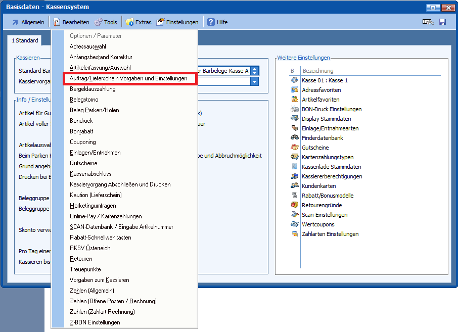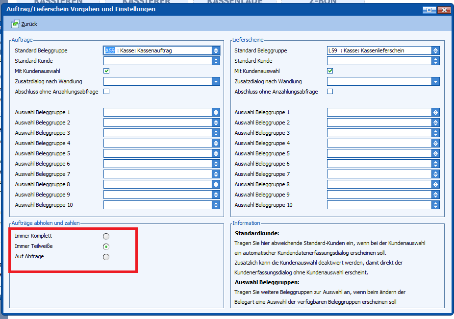 Hierzu kann man die gewünschte Einstellung unter „Auftrag / Lieferschein Vorgaben und Einstellungen“ in den Kassenbasisdaten auswählen.