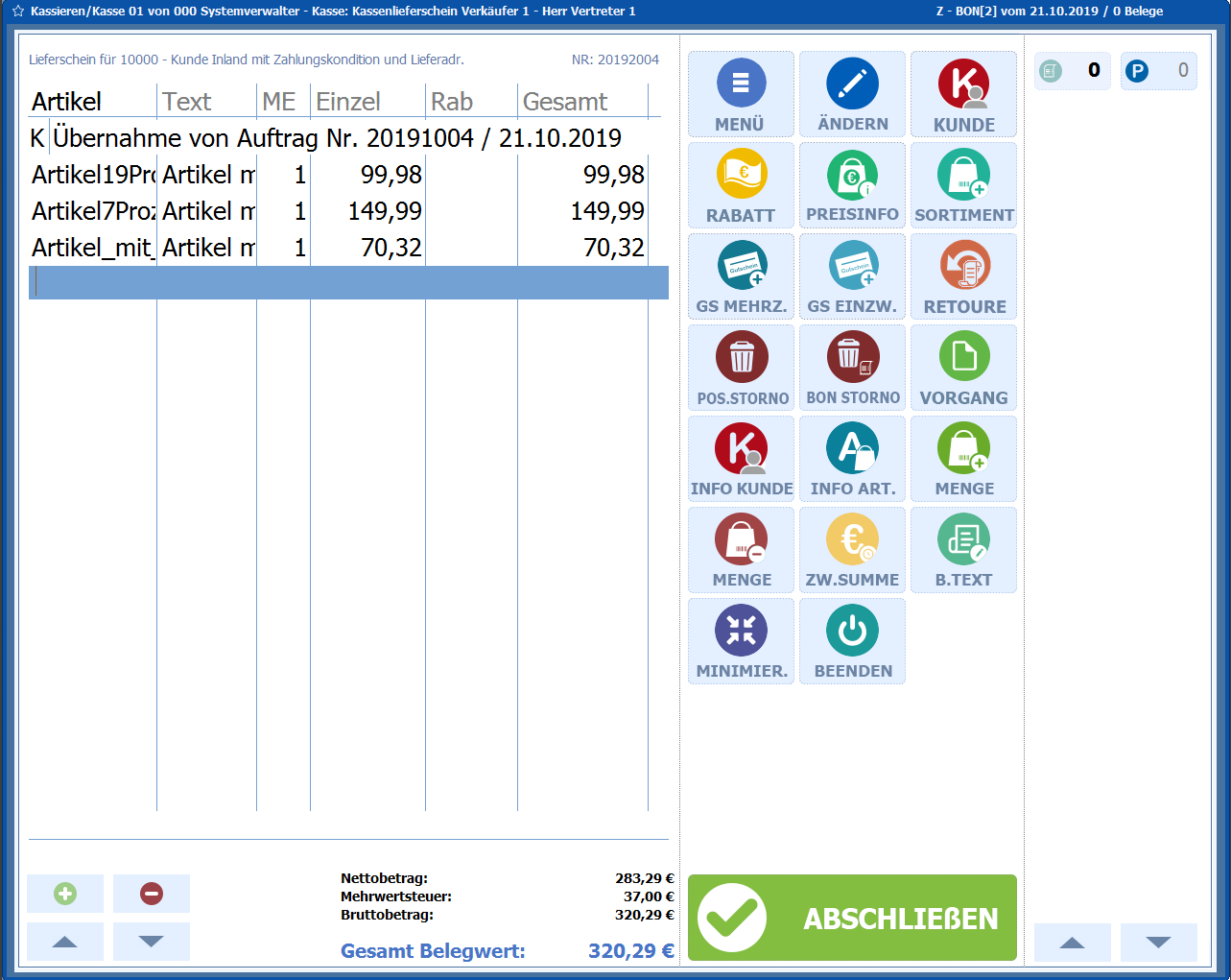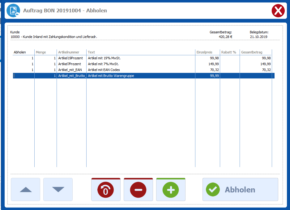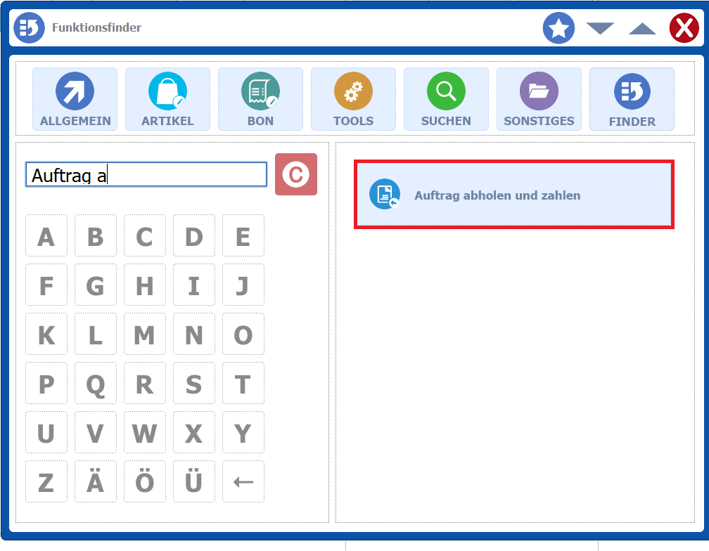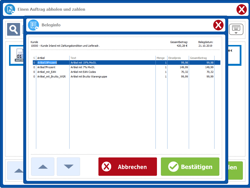 Bereich Kasse – Auftrag abholen / zahlen