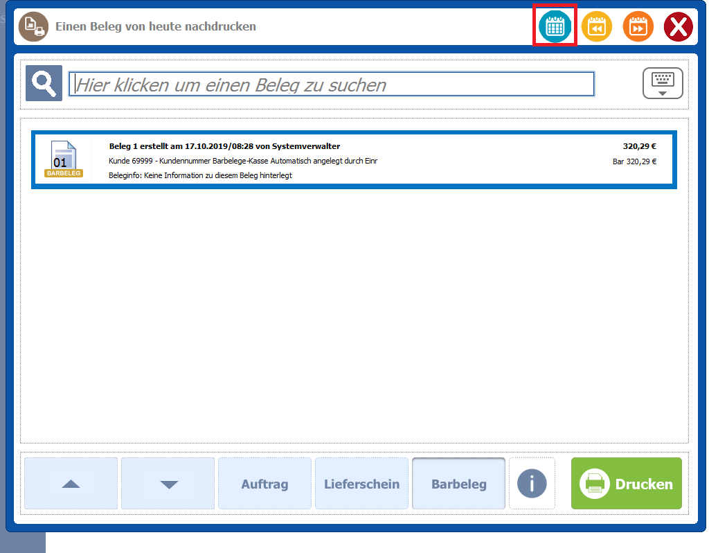 Mit dieser Programmänderung gibt es in der Titelleiste des Belegnachdruckdialogs einen Button, um direkt das Datum auswählen zu können.