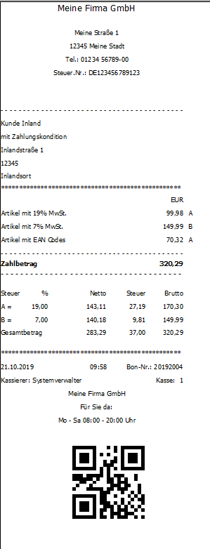 Bereich Kasse – Belegdruck