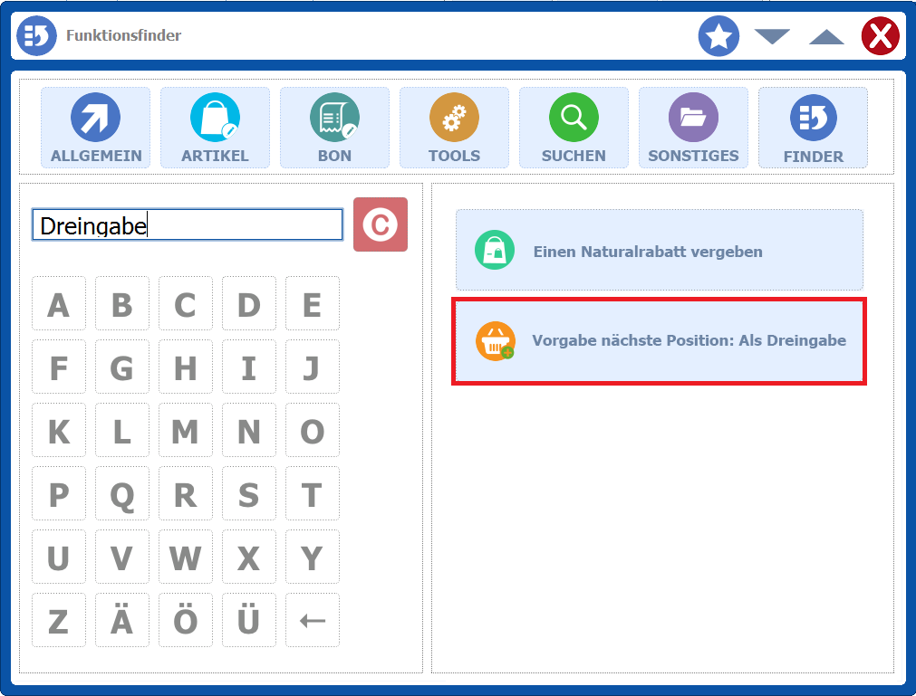 Mit dieser Programmänderung ist es wieder ersichtlich, ob die Artikeldreingabe aktiv ist. Wenn die Artikeldreingabe aktiv ist, wird ein entsprechender Hinweis in der Artikelzeile angezeigt.