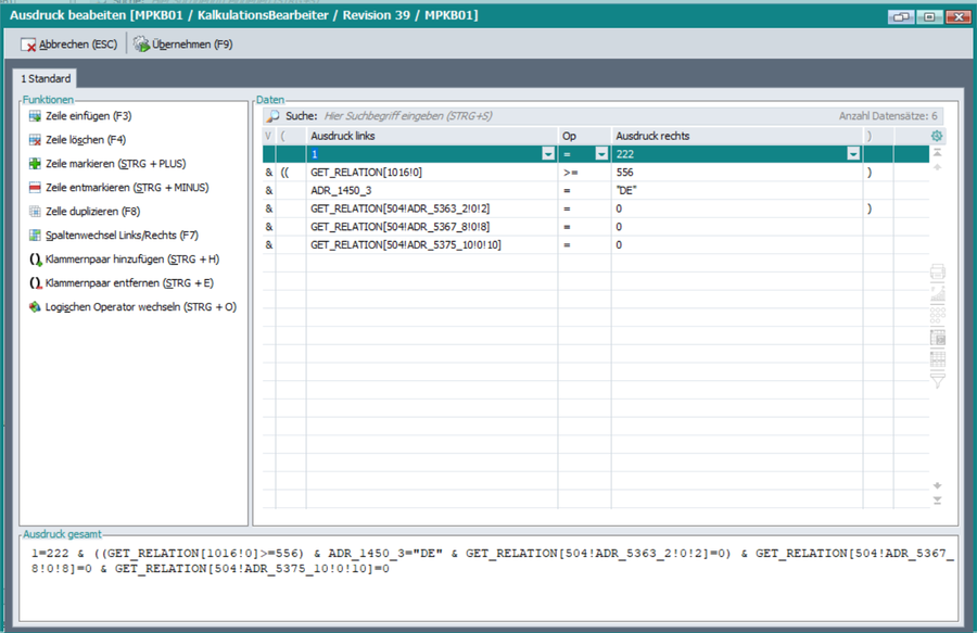 Submodul: Ausdruck bearbeiten in Scripteditoren-/Stammdatenkalkulationsdesigner |