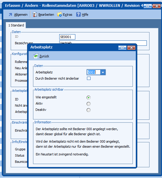 Mit dieser Programmänderung kann über eine Auswahltabelle in den Rollenstammdaten der Rollenarbeitsplatz einer Rolle ausgewählt werden.