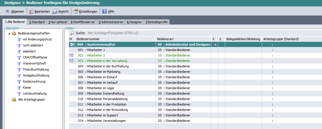 In der Bearbeitung der Zugriffsrechte stehen trotzdem alle Bediener zur Bearbeitung zur Verfügung: