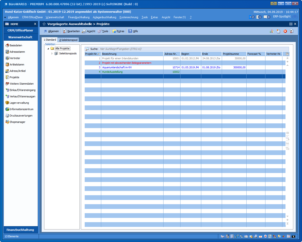 Der Selektionspool ist einer der drei BüroWARE/WEBWARE-Hauptanwenderbereiche. Diese sind: