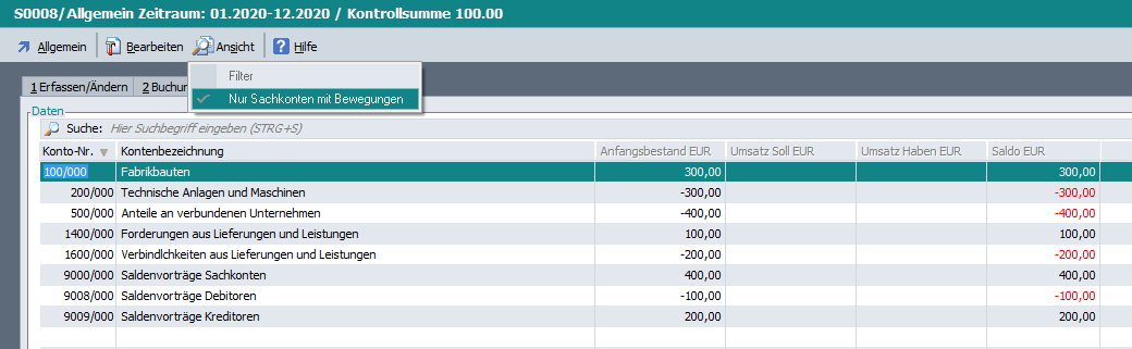 Hinweis: Die dort hinterlegten Sachkonten dürfen nicht zusätzlich ein Eröffnungsbilanzkonto eingetragen haben!