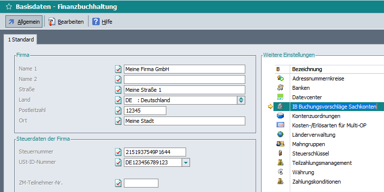 – eine Adressse (Kontonummer) mit Landesart „Inland“ und aktiviertem ZM Flag