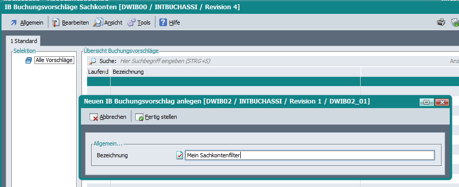 Ab Version 6.0 Revision 56700/PATCH und 56777/BETA können für den Intelligenten Buchungsassistenten Sachkontenfilter erfasst werden.