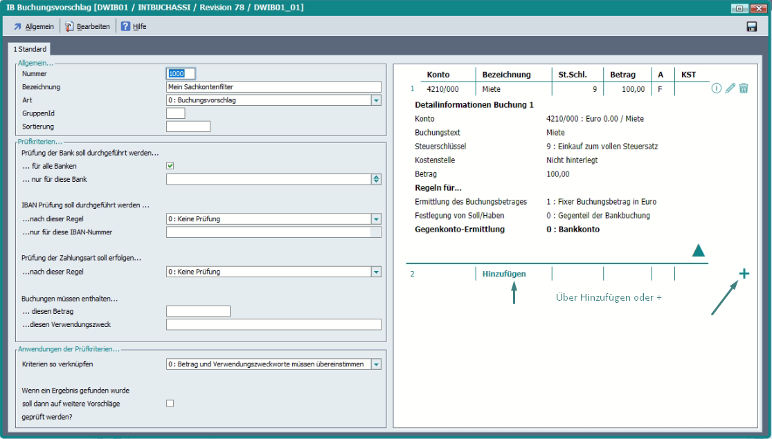 Sofern Sachkontenfilter erfasst wurden, werden diese beim Einlesen der Kontoauszüge im Intelligenten Buchungsassistenten berücksichtigt.