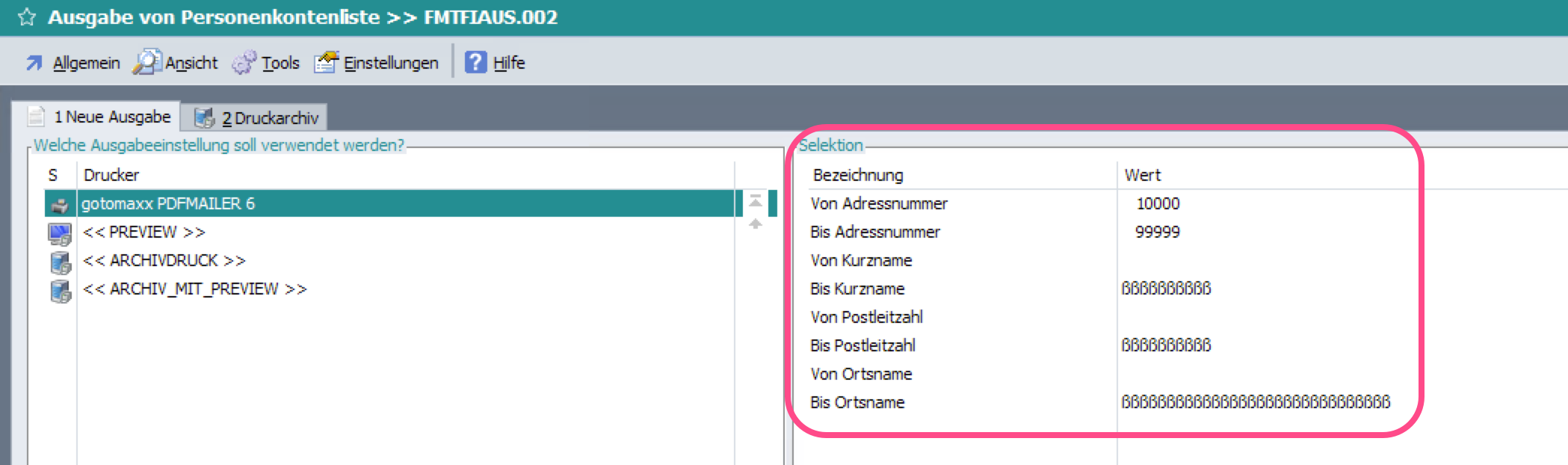 Auch bei Personenkonten bestand nur die Möglichkeit einer Bereichsauswahl: