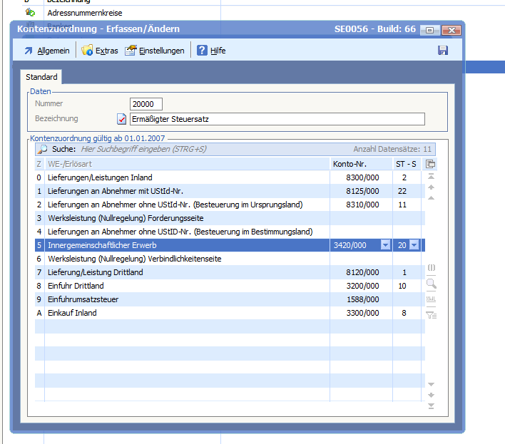 Ab Rev. 47738/Patch wird bei Neuinstallationen ein geänderter SKR03 ausgeliefert. Das bei Innergemeinschaftlicher Erwerb hinterlegte Sachkonto wurde von 3530/000 (falsch) auf 3520/000 (richtig) korrigiert.