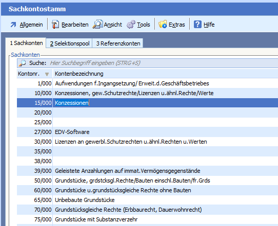 Möglich war Kontonummer von-bis und Kontenklasse (die Kontenarten) von-bis.