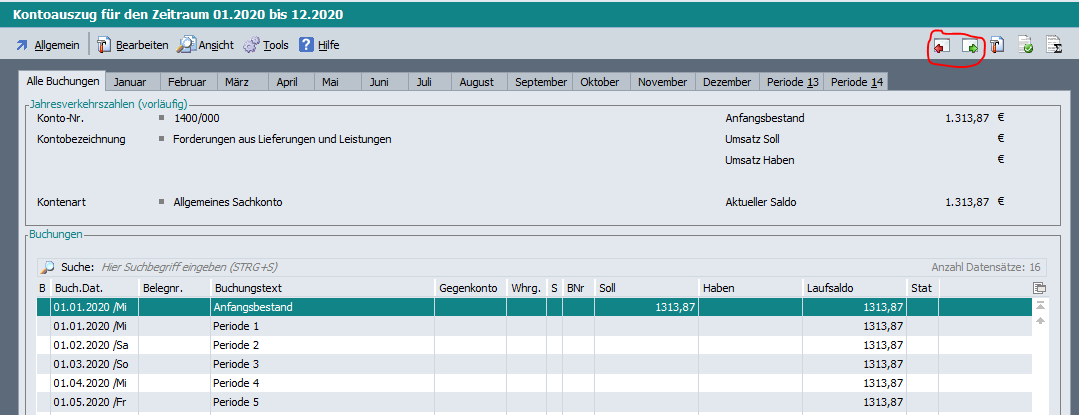 Wird der Kontoauszug direkt über den Sachkontenstamm und nicht über die Buchungserfassung Karteikarte „3 Sachkonten“ oder „4 Personenkonten“ aufgerufen, dient das NUR zur Ansicht, das Bearbeiten ist nicht möglich. …