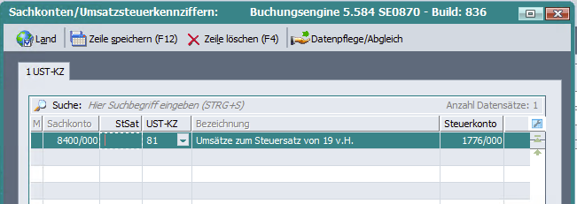 Wird jetzt in der bestehenden Zeile der Steuersatz noch hinzugefügt, dann wird eine zweite Zeile angelegt. …
