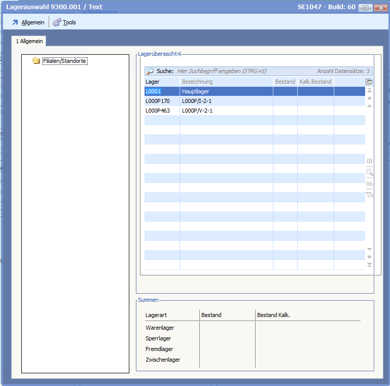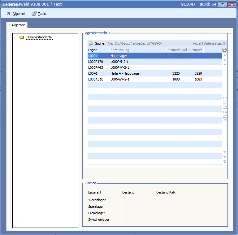 Wenn mehrere Lager aber keine Filialen verwendet wurden, konnte es unter Umständen passieren, dass die Lagerauskunft für Artikel nicht alle Lagerplätze auflistete.