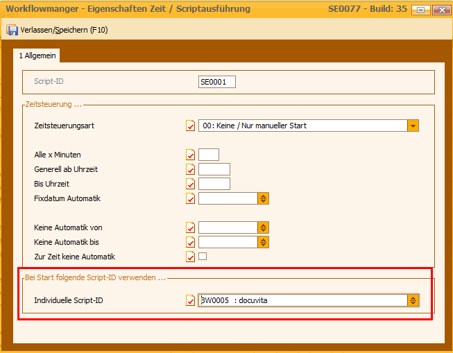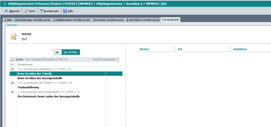 Sobald dieses Zugriffsrecht aktiv ist, werden bestehende Scripte beim bearbeiten direkt auf der Karteikarte 6 gestartet und eine Selektion auf nur befüllte Eventscripte vorgenommen.