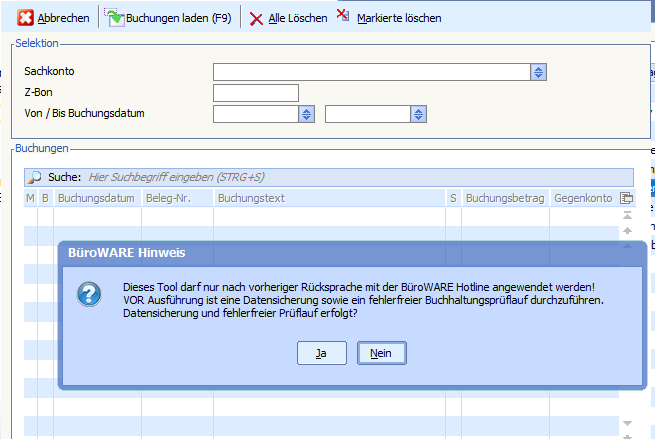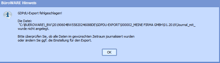 Es kommt zu einem Abbruch, sofern Buchungen in dem zu exportierendem Zeitraum nicht journalisiert sind.