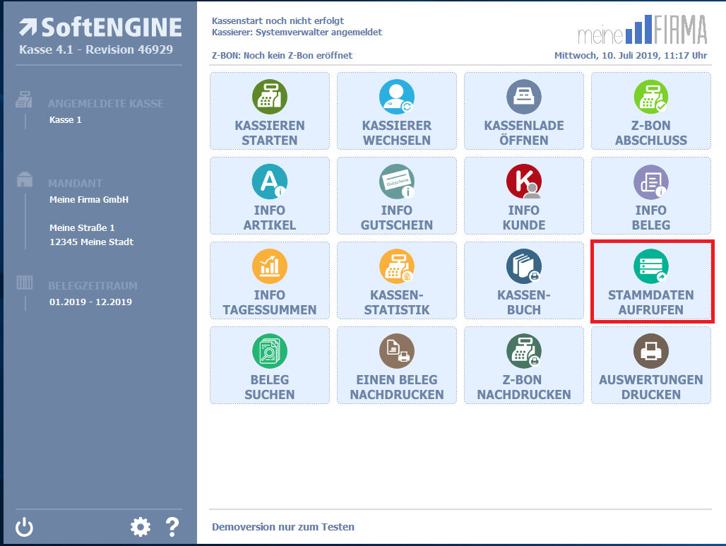 Kasse 4.1 Bereich Stammdaten