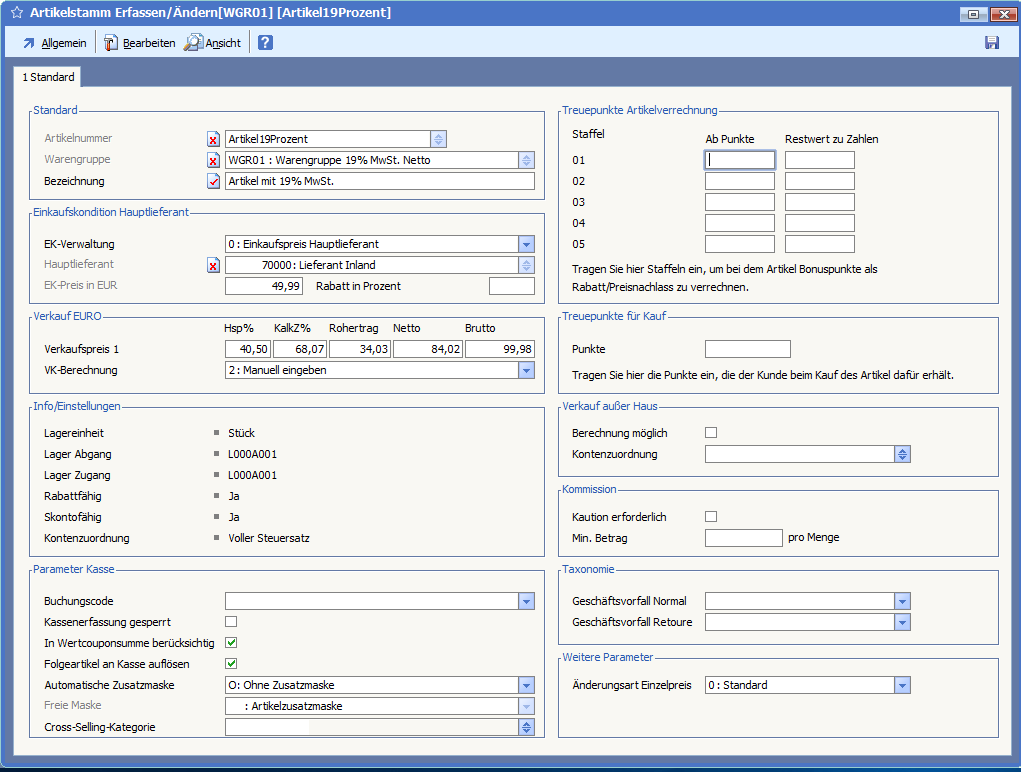 Kartei 2: Artikelverwaltung