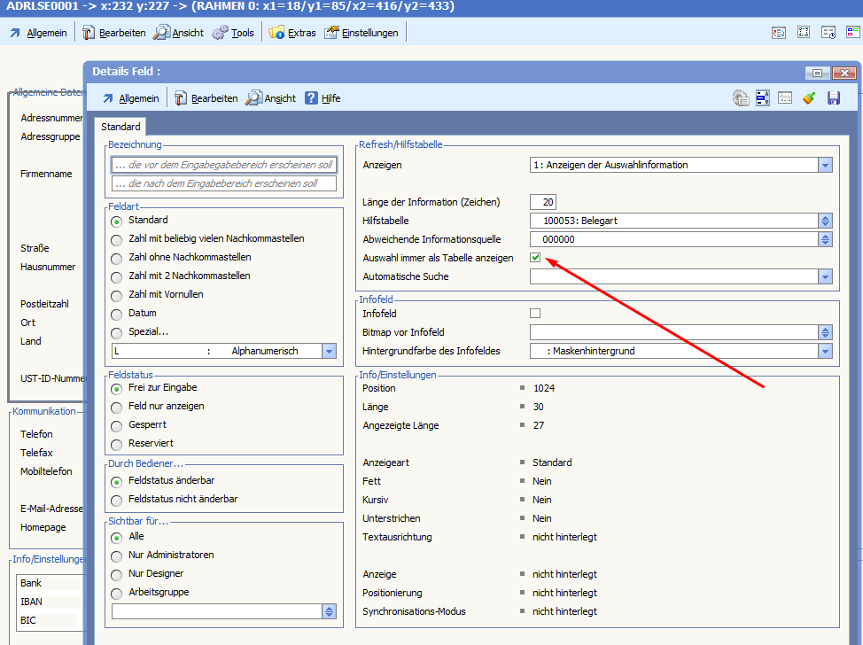Somit werden dann bei diesem Feld, selbst wenn ein Refresh hinterlegt ist, der normalerweise eine Listbox anzeigt (zb. alle mit 1xxxxx beginnend), diese tabellarisch dargestellt.