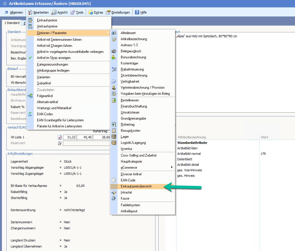 In diesem Layout finden Sie alle wichtige Mindestangaben eines Artikels.