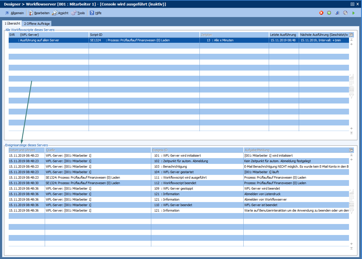 Workflowserver welche keine eigenen Einträge (bzw. keine eigene Sektion) in der INI-Datei festgelegt haben arbeiten mit den Standard-Systemvorgaben oder mit den Einstellungen der Sektion [Standard] aus der INI-Datei, falls diese angegeben wurden.