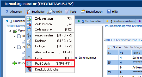Mit dieser Programmänderung ist es möglich, beim Bearbeiten eines Beleglayouts direkt die entsprechende Designerbereiche aufzurufen.