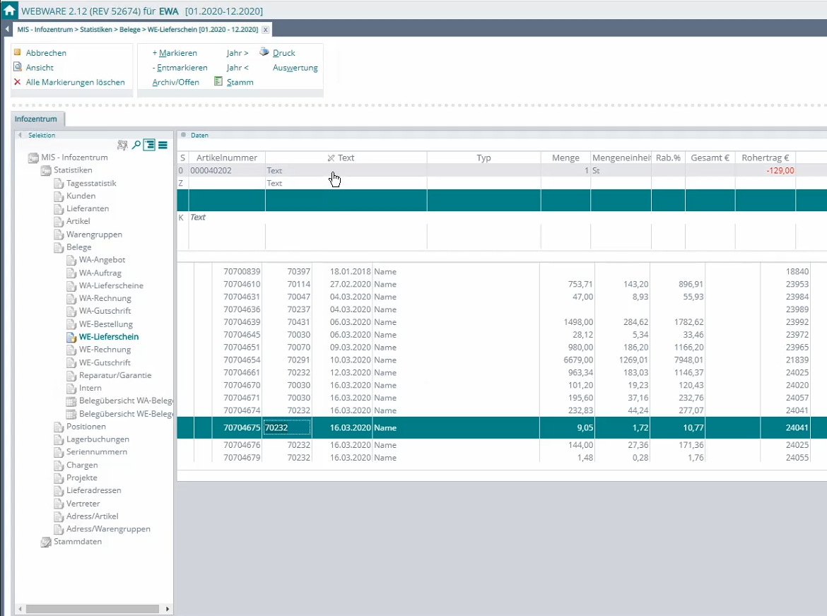 Mit dem Build 64 des Scriptes SE1047 (Artikel/Lagerauskunft DLV), enthalten ab Beta und Patch Revision 45900, haben wir eine Anpassung der Selektion für die Lagerauskunft vorgenommen.