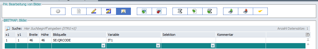 Dazu muss im Formular unter Bitmaps als Bildquelle „SE:QRCODE“ und als Variable eine IT angegeben werden.