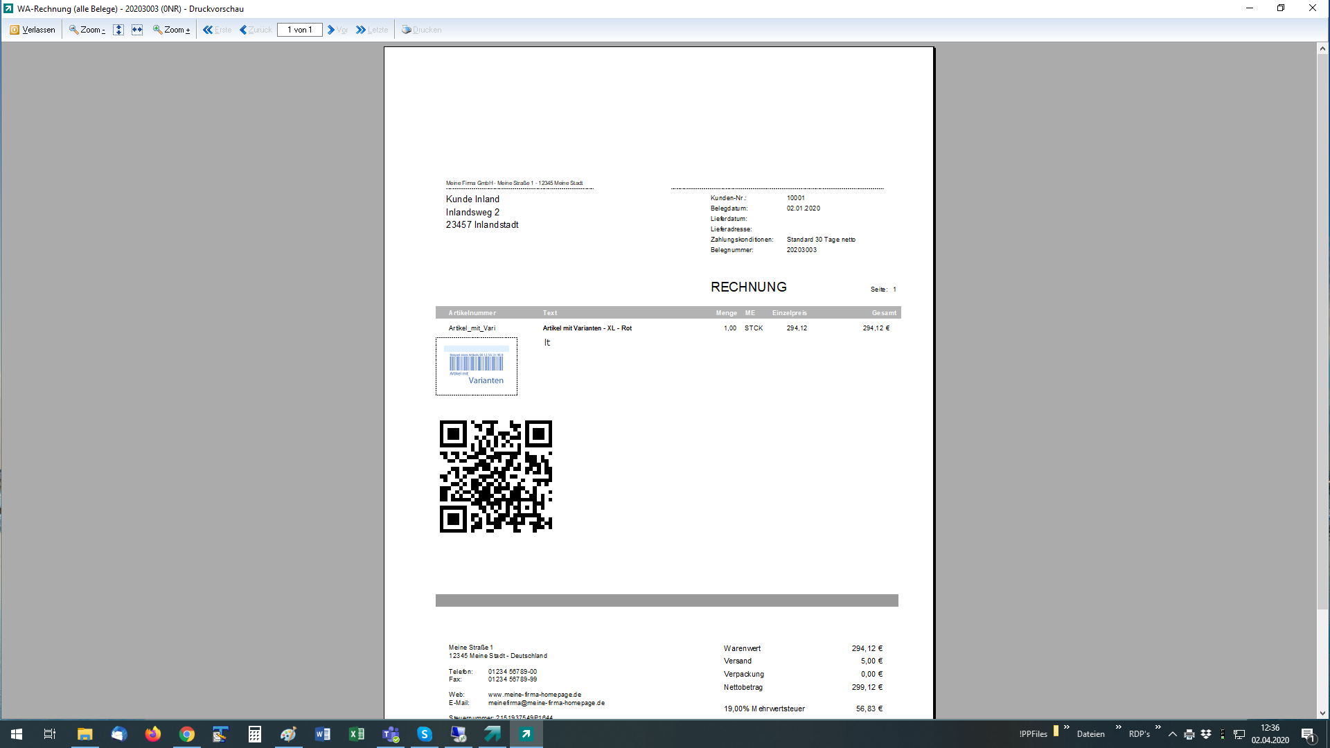 Es ist nun möglich einen QR-Code in einem Belegformular anhand des Notiztext 1 einer freien IDB zu machen.