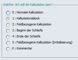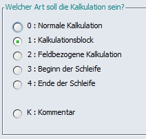 Mit den Revisionen Beta-55408 und Patch-55469 haben wir die Kalkulationsart 5 „Feldbezogenen Kalk ( init)“ aus dem Scripteditor entfernt.