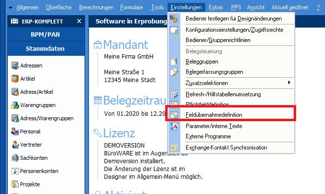 Bereich: Feldübernahmedefinitionen