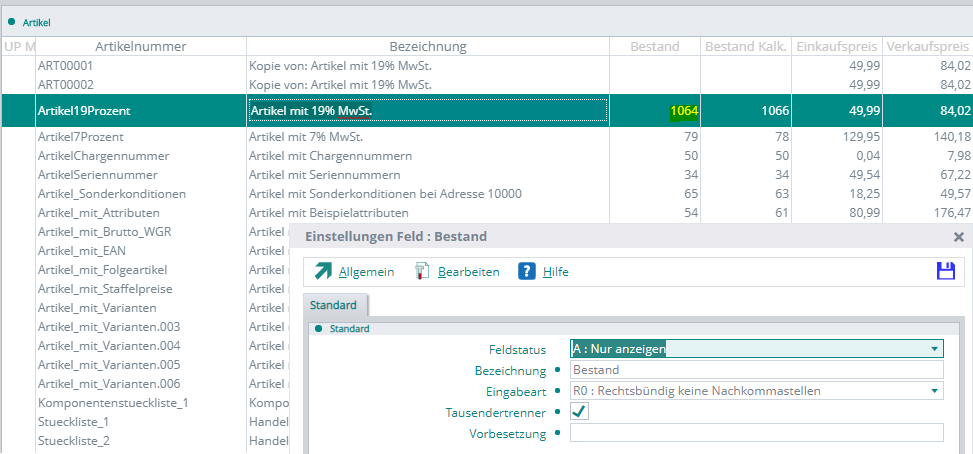 Nun wird korrekterweise für alle 3 Selektionen ein Bestand von 14 Stück zurückgemeldet. …