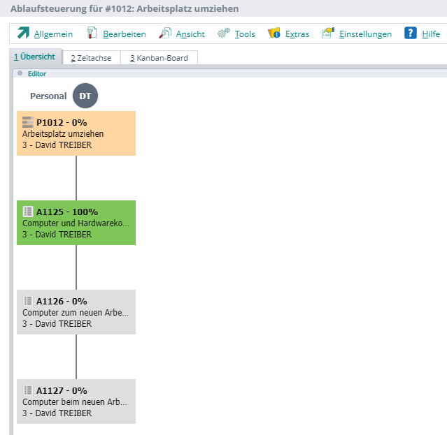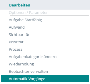 Über den Menüeintrag „Bearbeiten > Automatik-Vorgänge“ können Sie alle Ereignisse sehen, die bei dieser Aufgabe stattfinden.