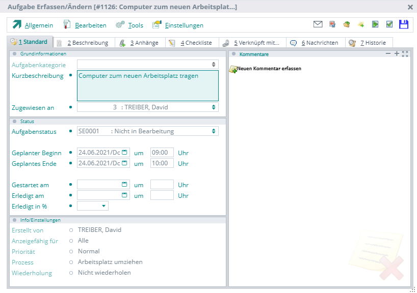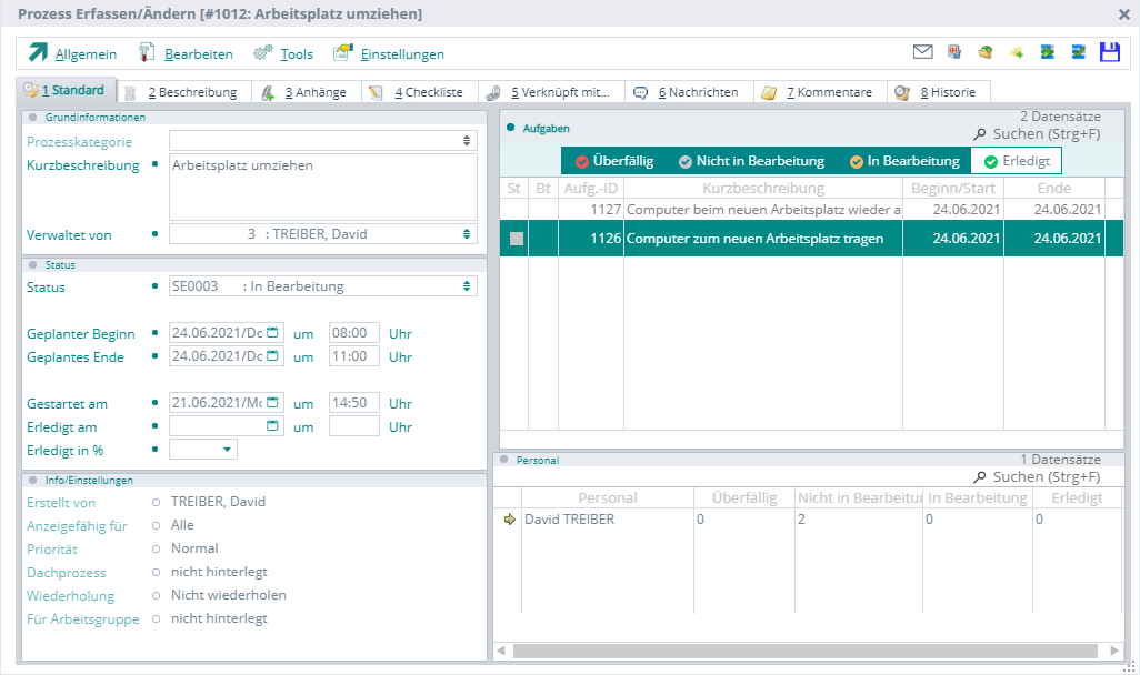 Wenn Sie einen Prozess geöffnet haben können Sie mit Doppelklick auf die Aufgabe das Aufgabenfenster öffnen.