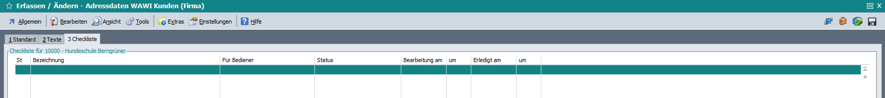 Mit [F3] können Sie nun neue Checklisteneinträge bei dieser Adresse hinterlegen, die Sie im Sinne einer „To-Do-Liste“ abarbeiten können und einen passen Status hinterlegen.