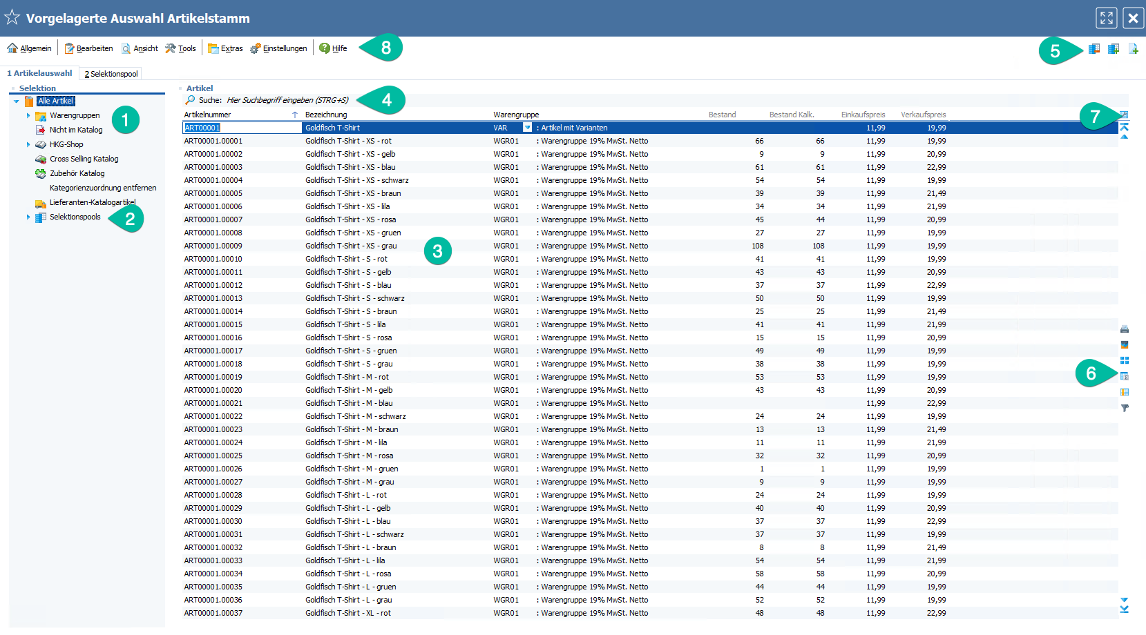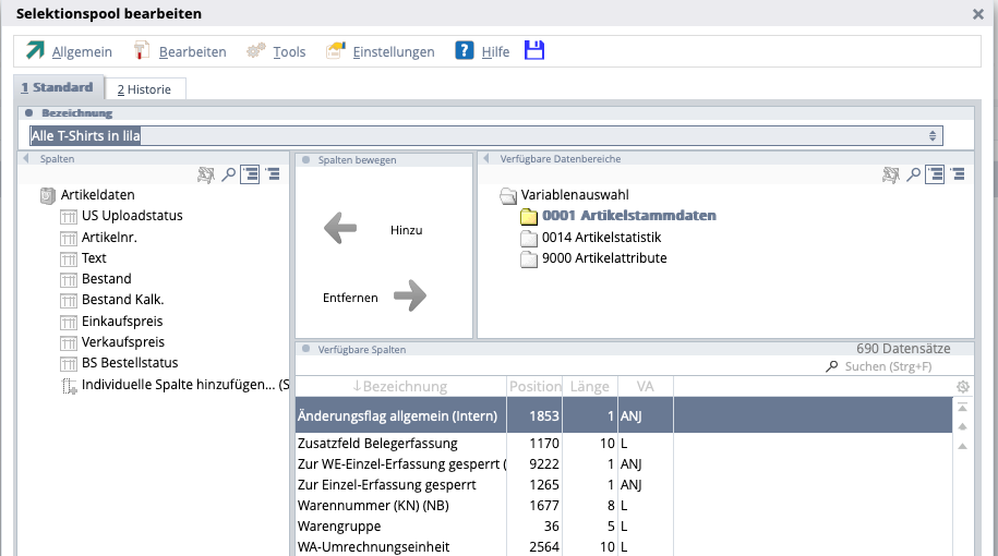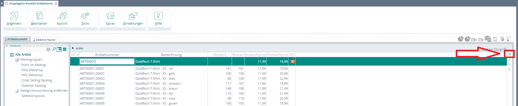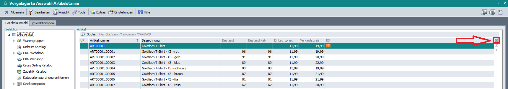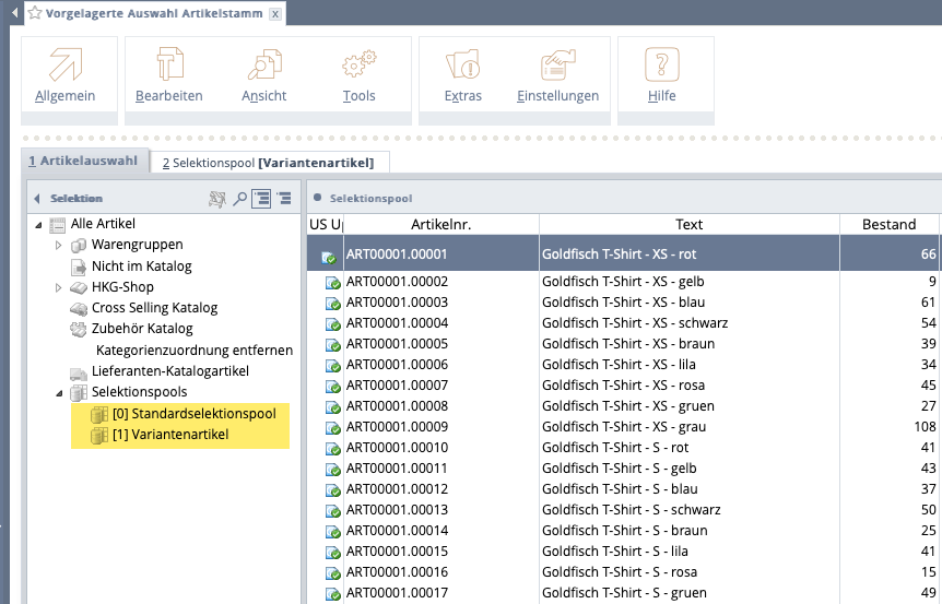 Da Sie aber vermutlich nicht alle Datensätze (hier im Beispiel alle Artikel) auf einmal auswerten wollen, empfiehlt es sich, die gewünschten Datensätze in den  Selektionspool zu übertragen. …