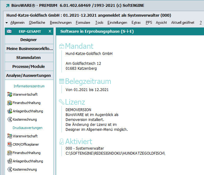 Ihre SoftENGINE-ERP-Suite stellt Ihnen eine Vielzahl von Auswertungen bereit. Diese sind einerseits über die Druckauswertungen im Bereich Analyse und Auswertungen zu finden, zusätzliche Auswertungen finden Sie auch in den Infosystemen.