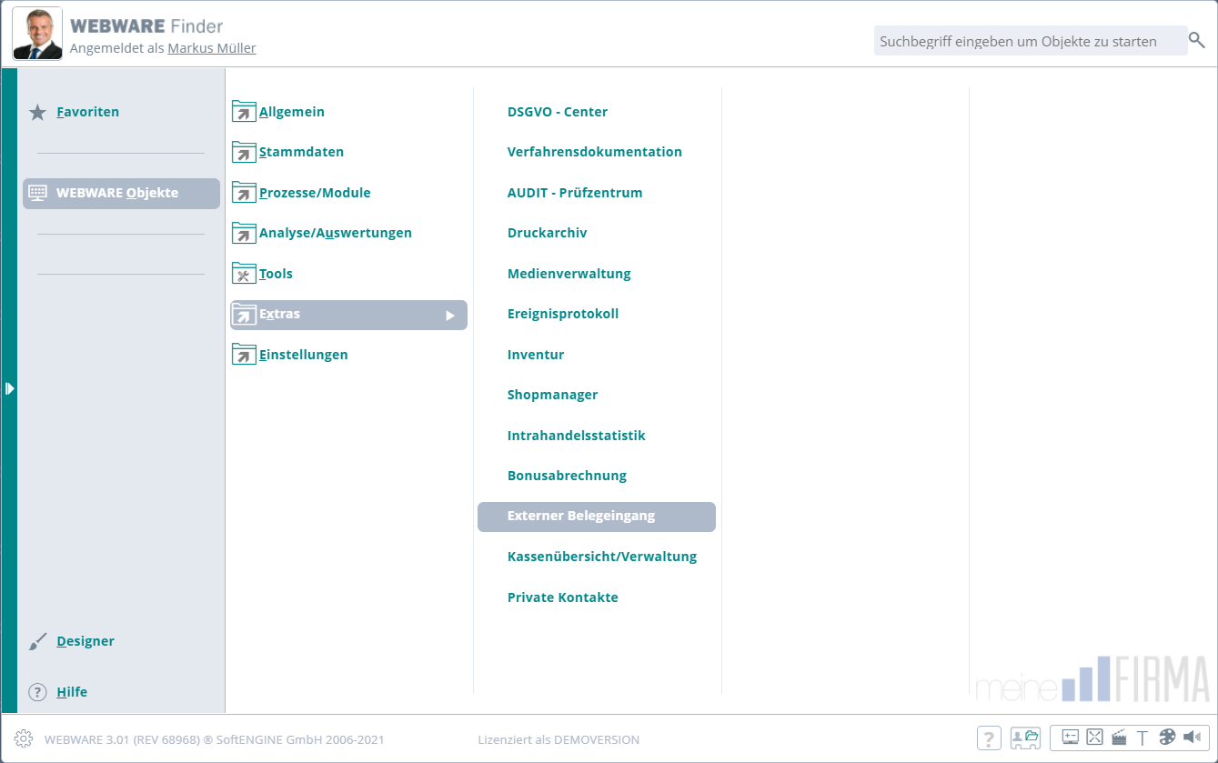 Die Arbeitsweise in Ihrer SoftENGINE ERP ist in WEBWARE und WinGUI/BüroWARE gleichartig.