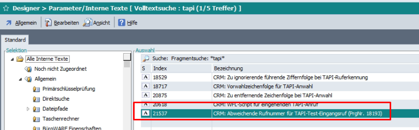 Es gibt in BW/WW drei Programmnummern um einen eingehenden TAPI-Anruf zu simulieren.