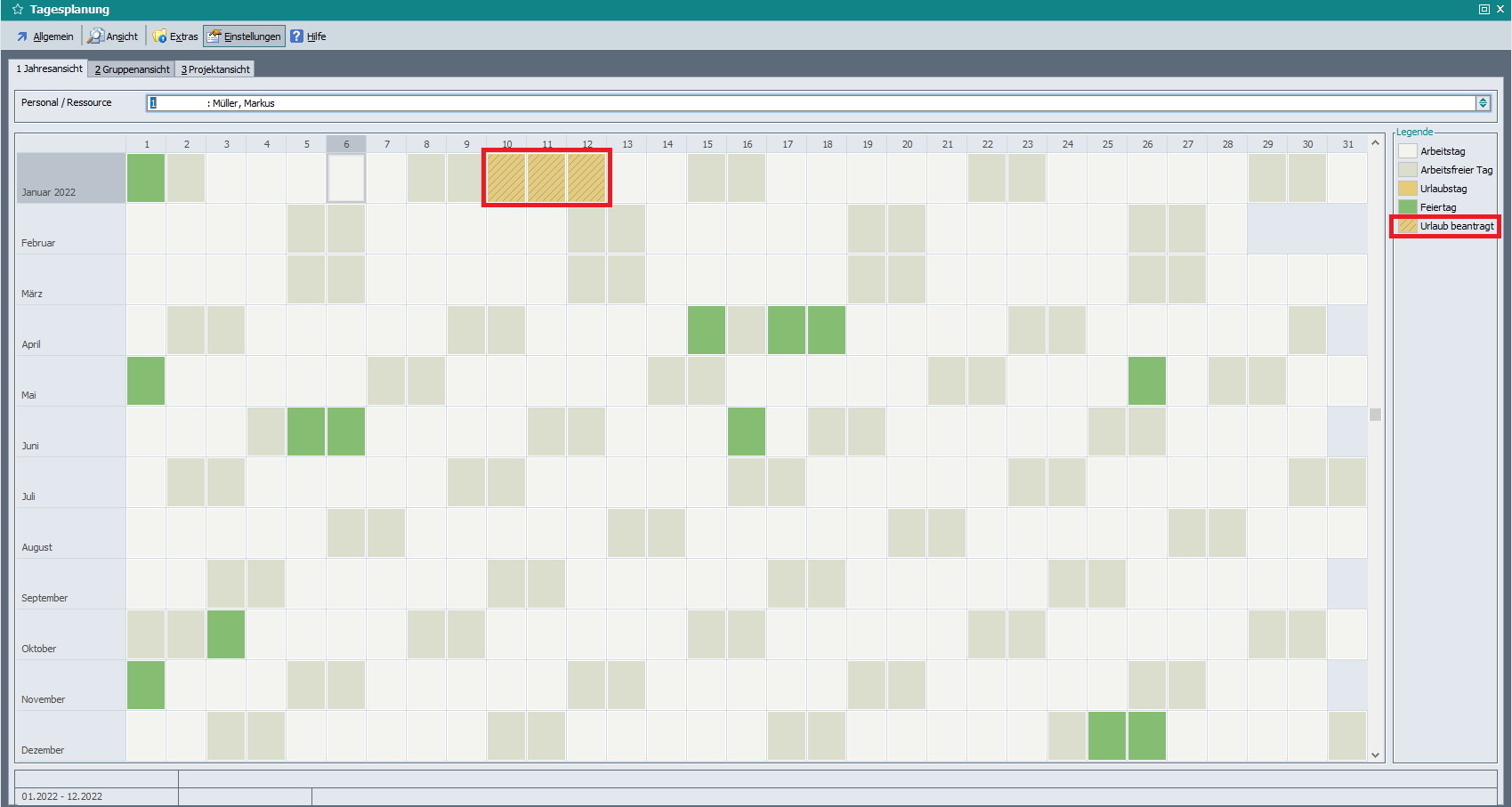 Öffnen Sie die Tagesplanung, um geplante Urlaubstage einzutragen.