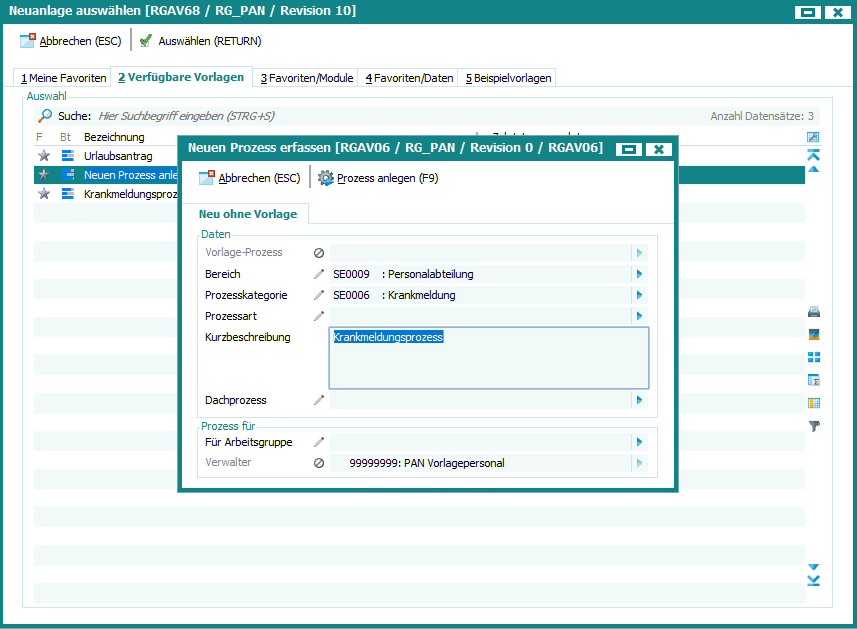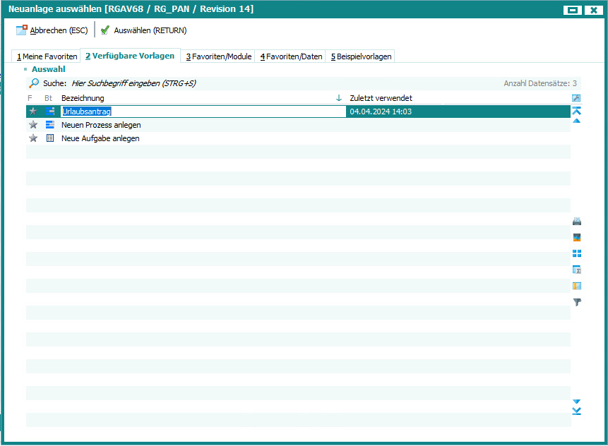 Wird in der Tagesplanung die Tagesart „Urlaub beantragt“ aufgerufen, ist damit ein PAN-Prozess „Urlaubsantrag“ verbunden.