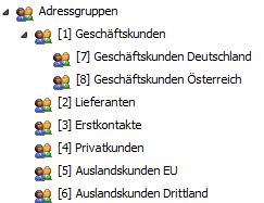 Diese werden dann im Baum automatisch unterhalb des entsprechenden Astes angezeigt und enthalten die dem vorgegebenen Kriterium entsprechenden Adressen.