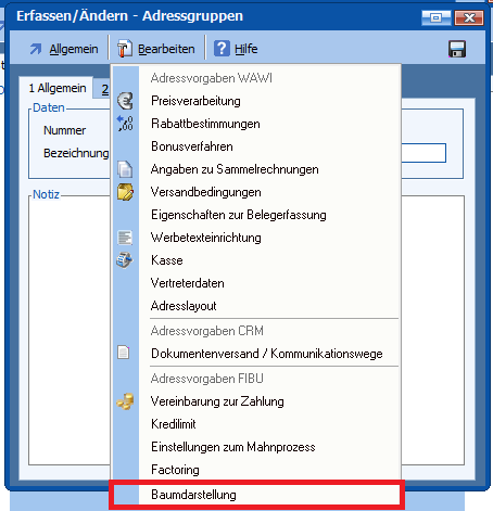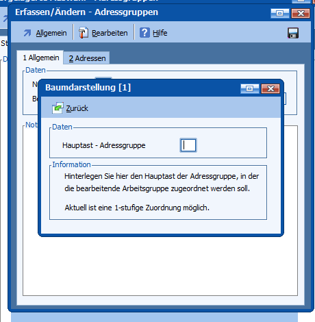 Mit dieser Programmänderung ist es möglich, eine Adressgruppe im Baum der Adressgruppen einem Hauptast zuzuordnen. Hierzu gibt es das Feld DBK08_5058_2, das auch auf der Optionsmaske „Baumdarstellung“ eingebunden ist.