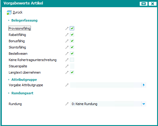 Die Information aus dem Artikelstamm wird in die Positionsdaten übernommen. In den Kennzahlen wird der Artikel auf Basis der Positionen ignoriert.