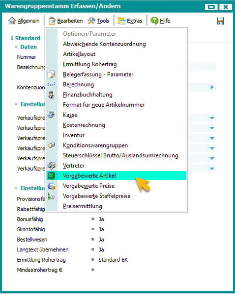 Die Konten für die Buchungen werden aus den Warengruppen übernommen: