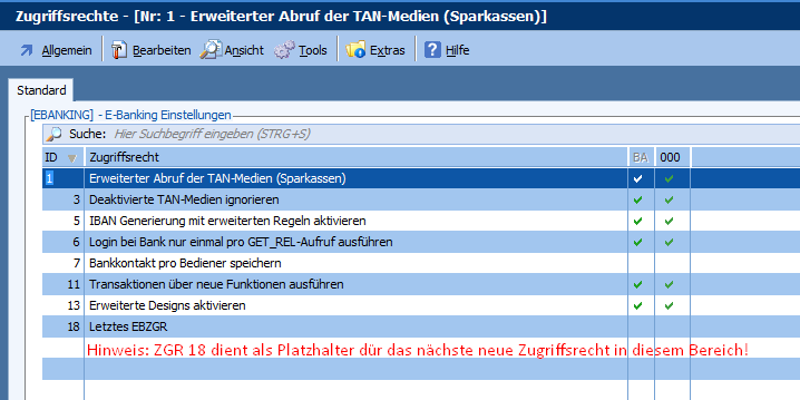 Die AutoSEARCH bei Adressen nach Umlauten brachte u.U. keine Ergebnisse. Der Grund dafür war, dass der Text vor der Übergabe an die Schnellsuche (AutoSEARCH-Funktion) in UTF8 konvertiert wurde, aber diese Suchfunktion kein UTF8 erwartete. Mit Aktivieren folgenden Zugriffsrechts